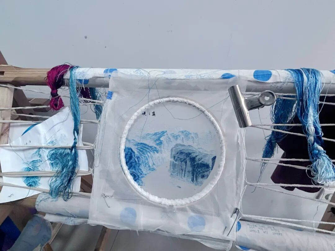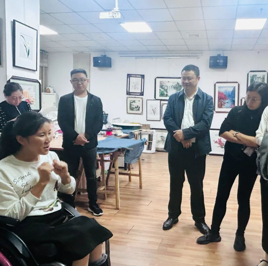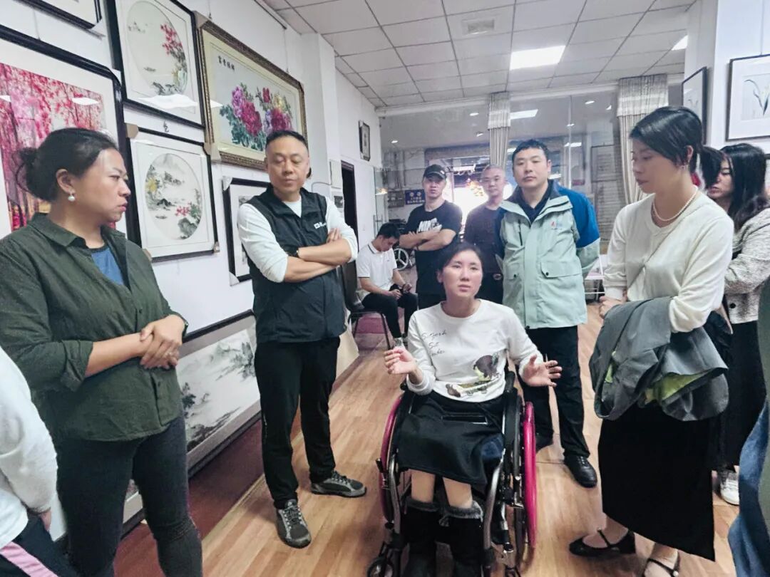 师生们参访了“全国自强模范”石胜兰工作室,她身残志坚,苦练夔绣,创作《白帝雄姿》《夔门红叶》等数十幅优秀作品,在重庆工艺美术展等展览中斩获奖项。为回报社会关爱,她组织成立“盛兰工作室”,专门针对残疾人开办夔绣培训班,帮助全国500余名残疾人在飞针走线中找寻人生价值。她自强不息、与命运抗争的精神深深感染在场的同学。