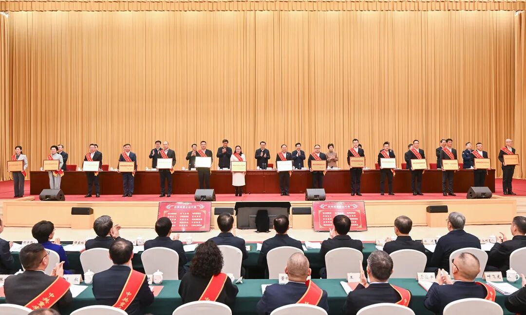 袁家军、胡衡华、王炯、程丽华等为受表彰的民营企业代表颁奖。记者 刘力 摄/视觉重庆