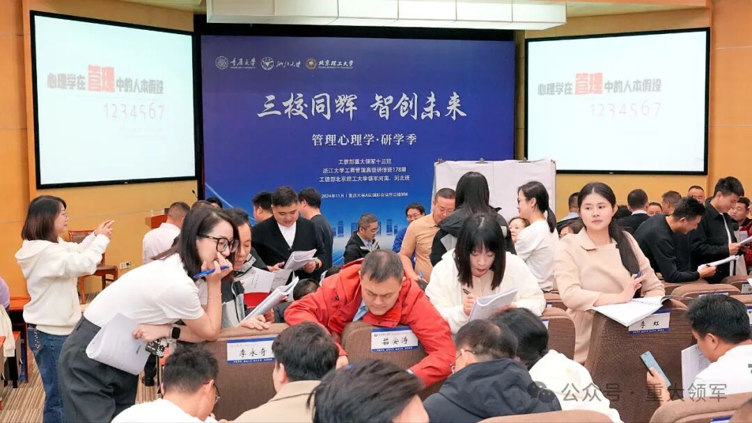 2024年11月16日至17日,以“三校同辉,智创未来”为主题的研学合班课程在重庆大学顺利举行。工信部重大领军十三班、浙江大学工商管理高级研修班178期以及工信部北京理工大学领军河南、河北班共200余位同学齐聚一堂,同学同行,度过了愉快的学习周末。